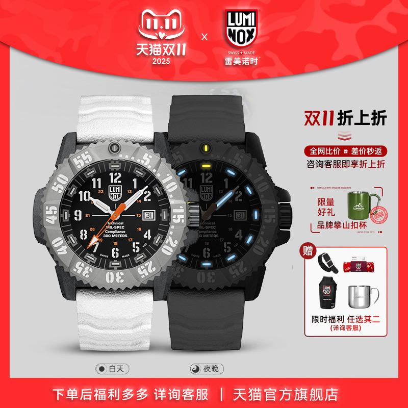 新品3351极地白 | 雷美诺时 瑞士手表男鲁美诺斯军表抗震防摔3359