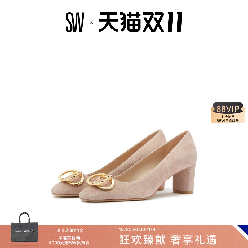 Stuart Weitzman/SW ANICIA 60 春夏双环扣方跟圆头高跟鞋女单鞋