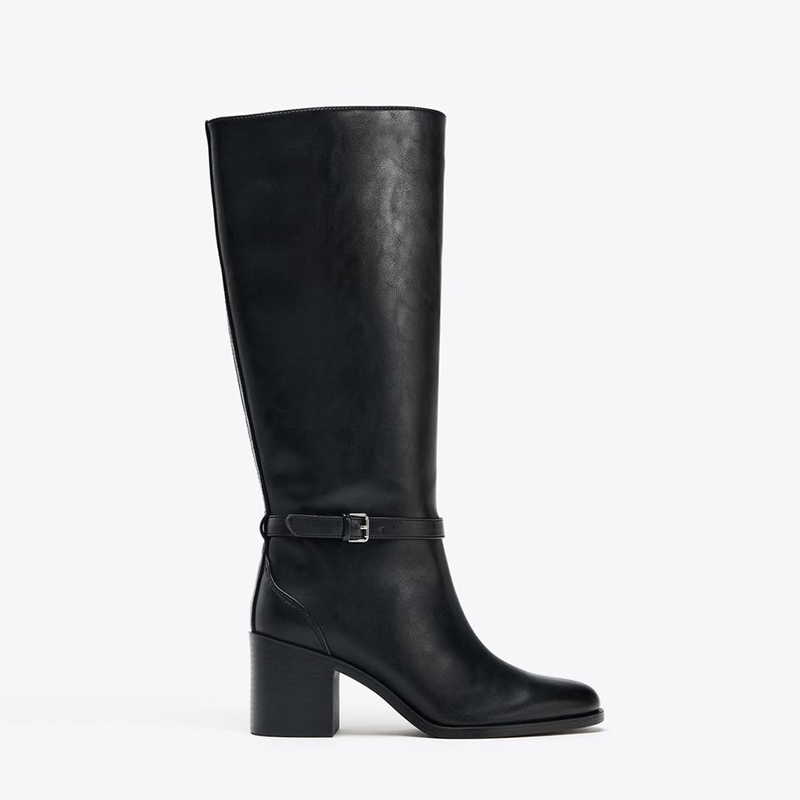 ZA2025秋冬新款圆头高跟骑士靴复古风大桶围高筒靴粗跟不过膝长靴