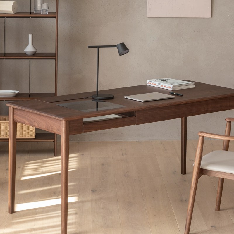 山川书桌 致家家居 |黑胡桃木书房书桌极简实木办公桌书法桌家用