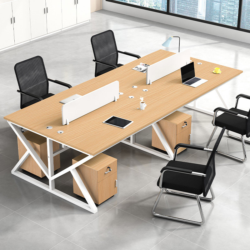 办公桌实木简约现代工作位4人8人卡座公司职员桌椅组合套装员工桌