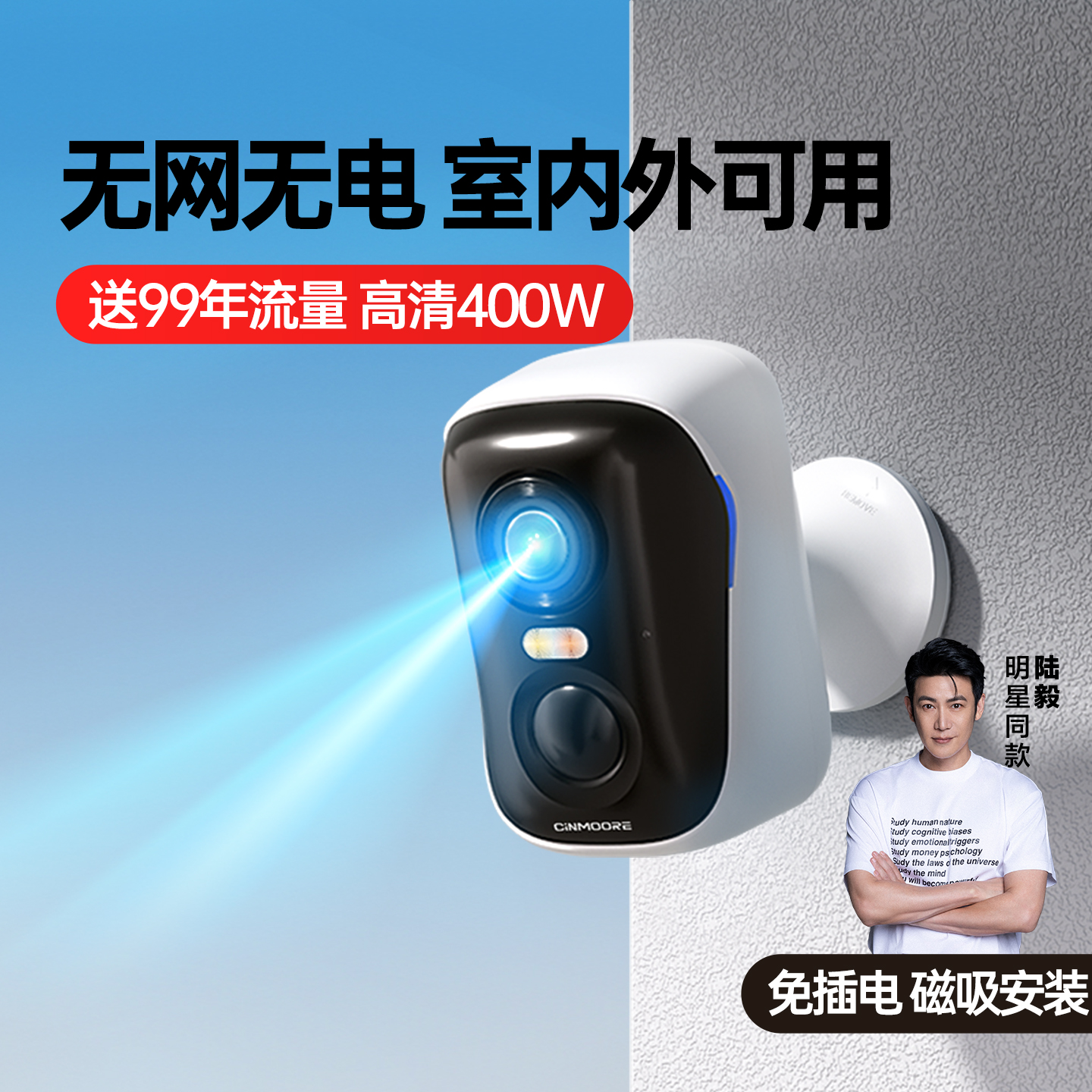 摄像头无线手机远程免插电免打孔无需网络高清夜视家用摄影智能4G监控器WIFI室内外套装家庭360度无死角全景