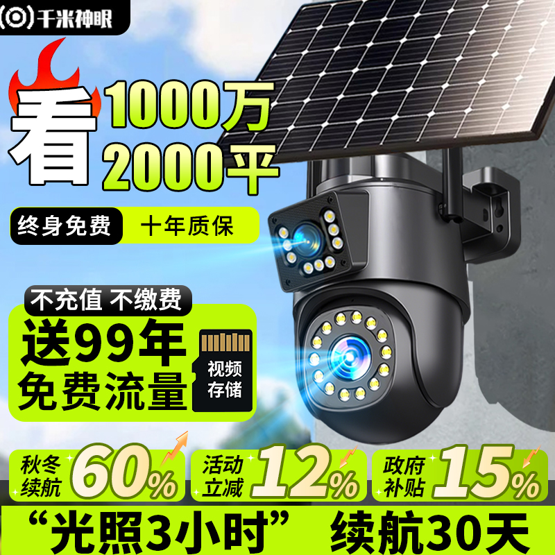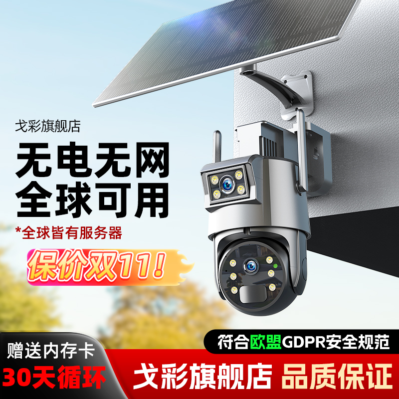 香港/台湾/澳门国外专用太阳能双镜头监控器360度摄像头手机远程