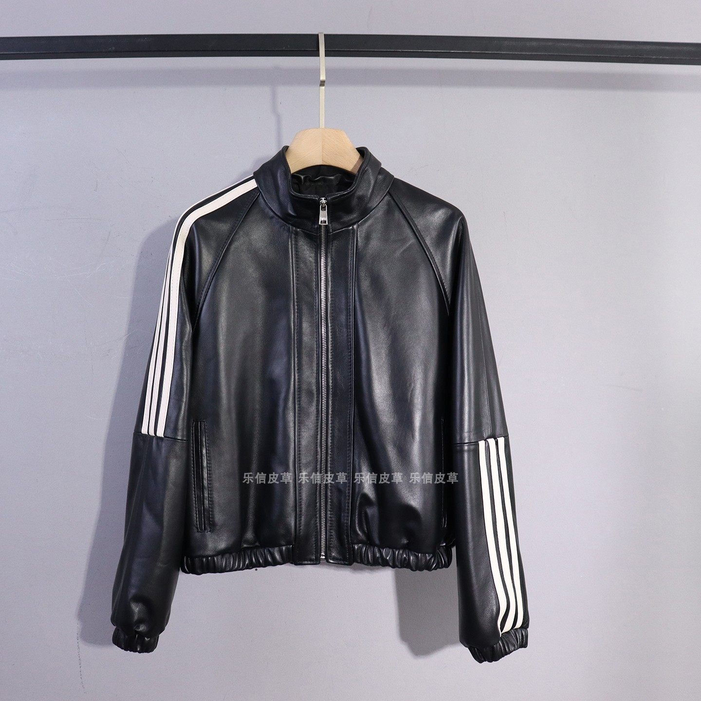时尚新款真皮皮衣女款绵羊皮修身气质百搭显瘦休闲立领皮夹克外套