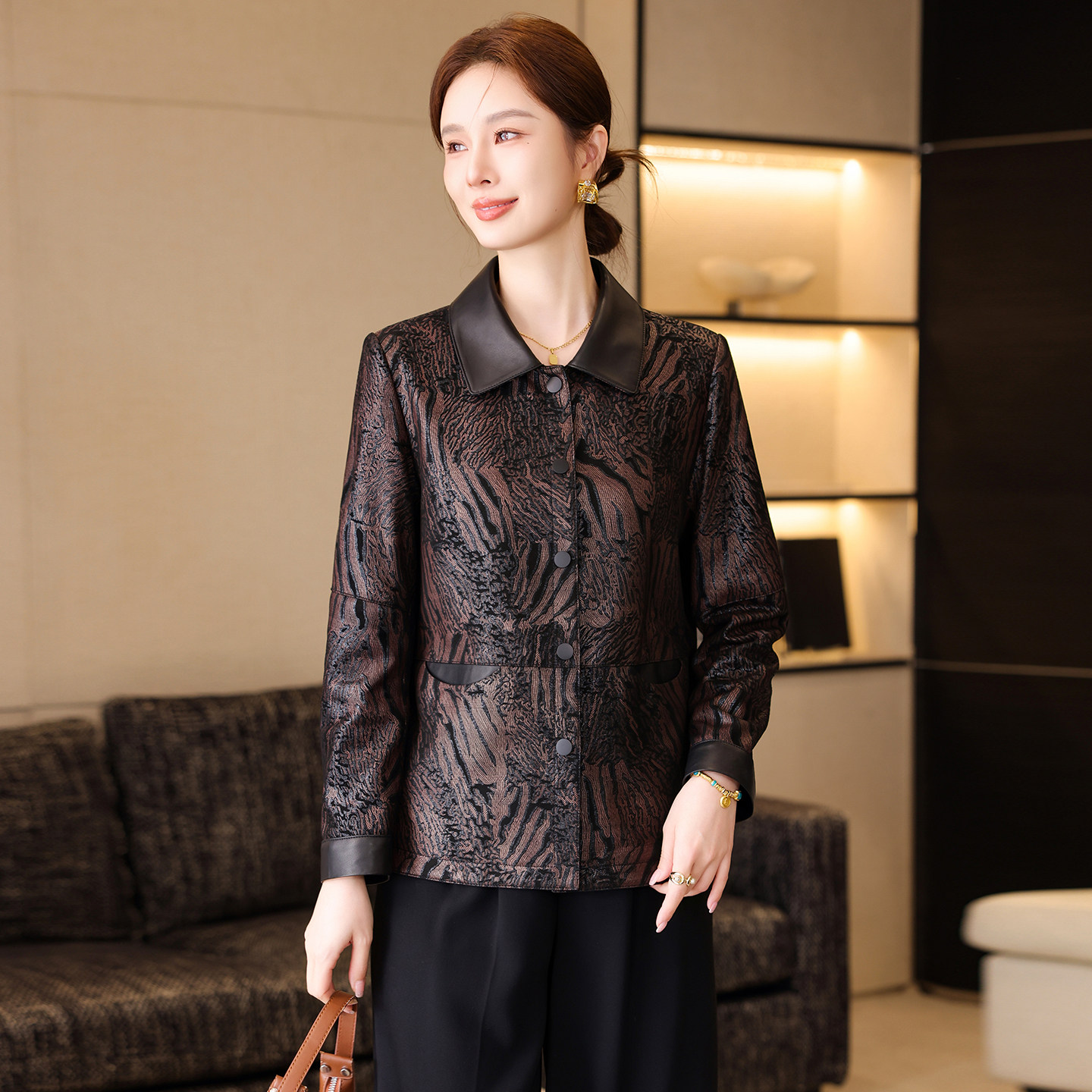 皮衣女款2025新款春秋海宁绵羊皮夹克中年妈妈真皮立领修身外套