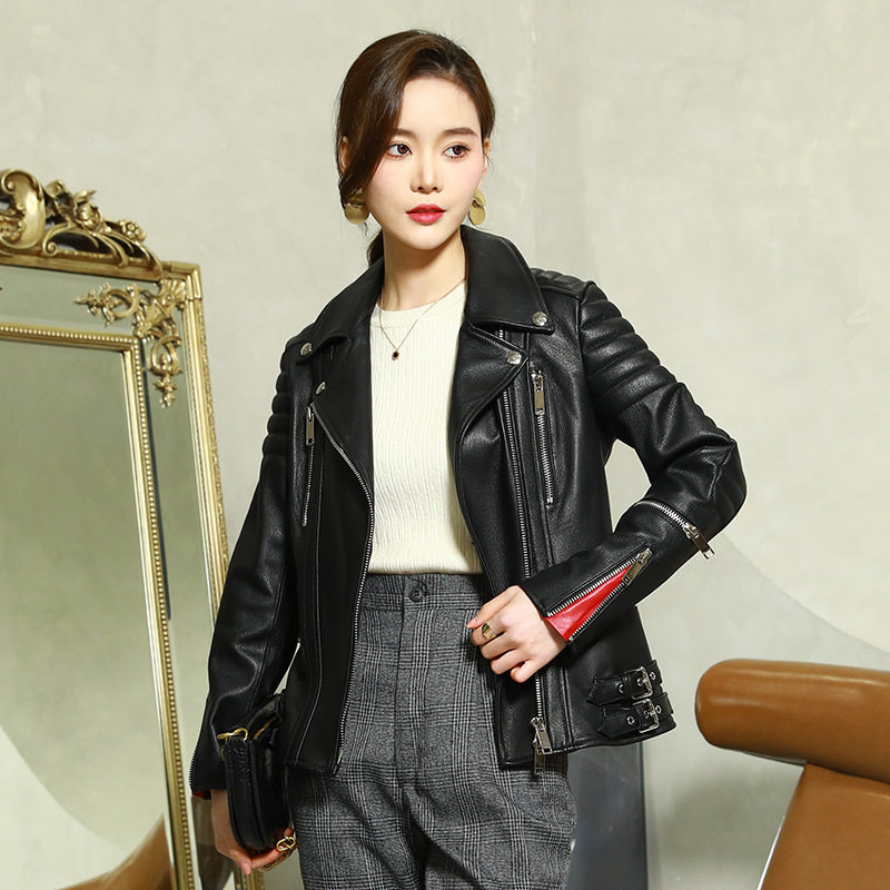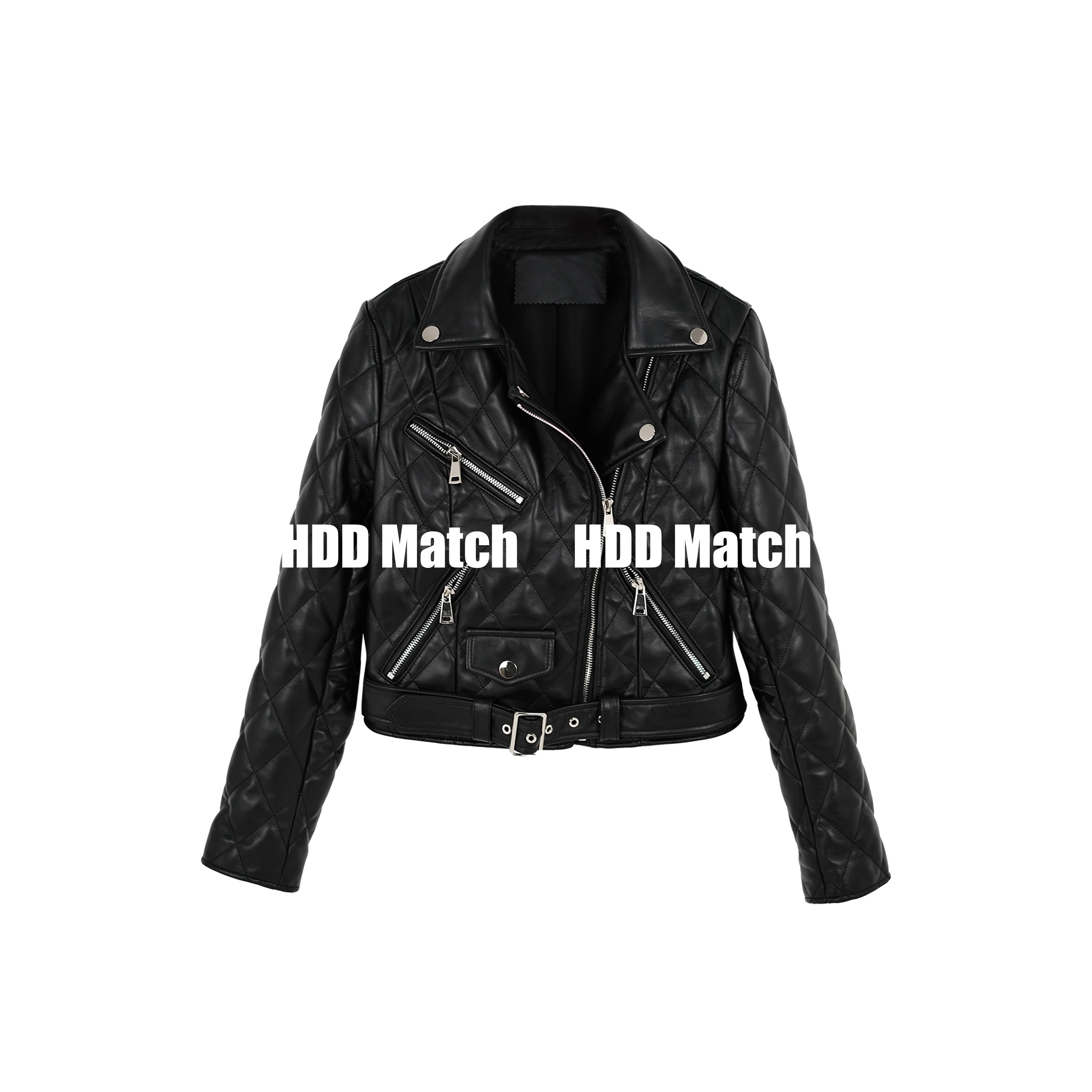 HDD- "自我帅气" 绵羊皮 女款修身设计机车真皮皮衣外套 Y1125