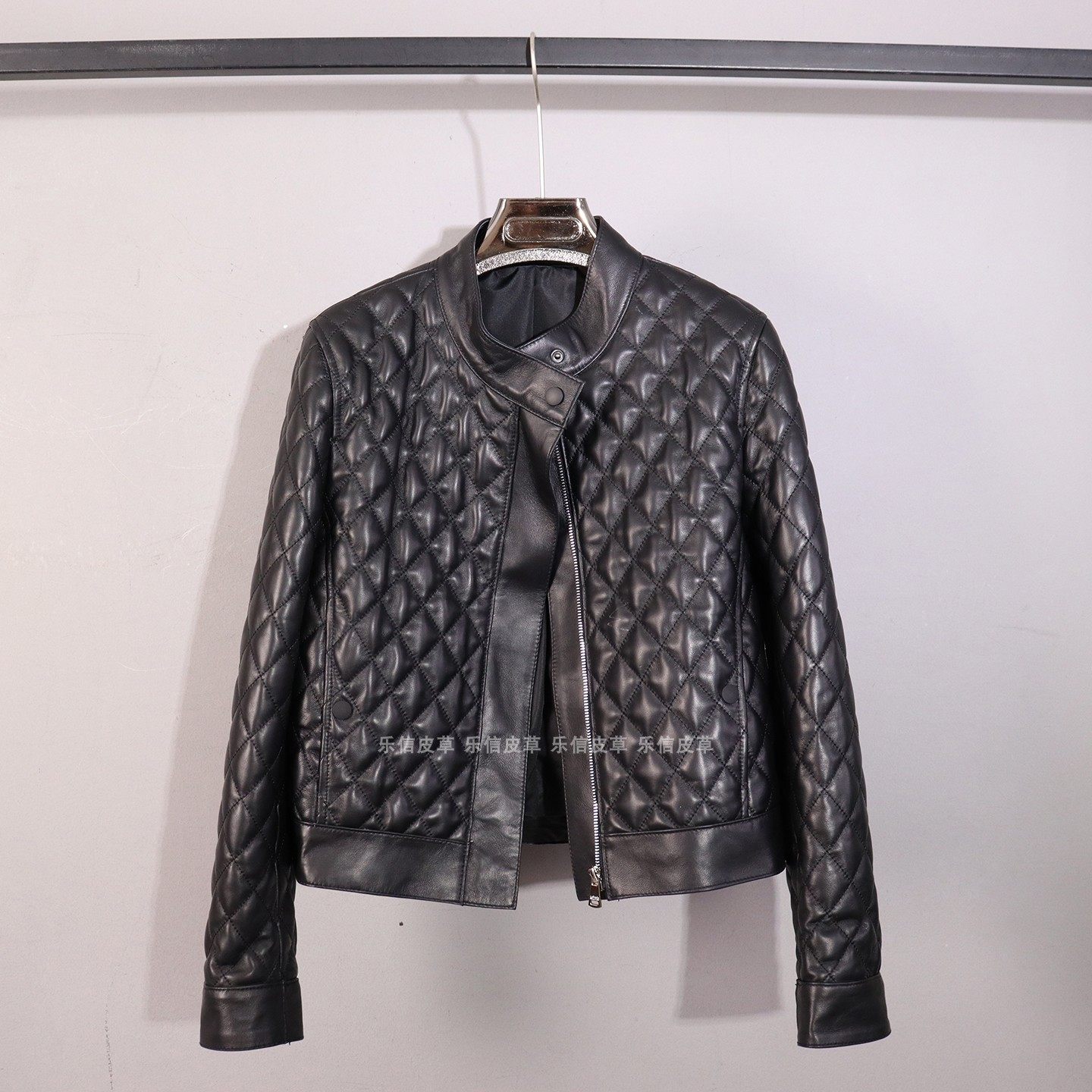 女款新款真皮夹棉皮衣绵羊皮时尚修身气质休闲菱格纹保暖上衣外套