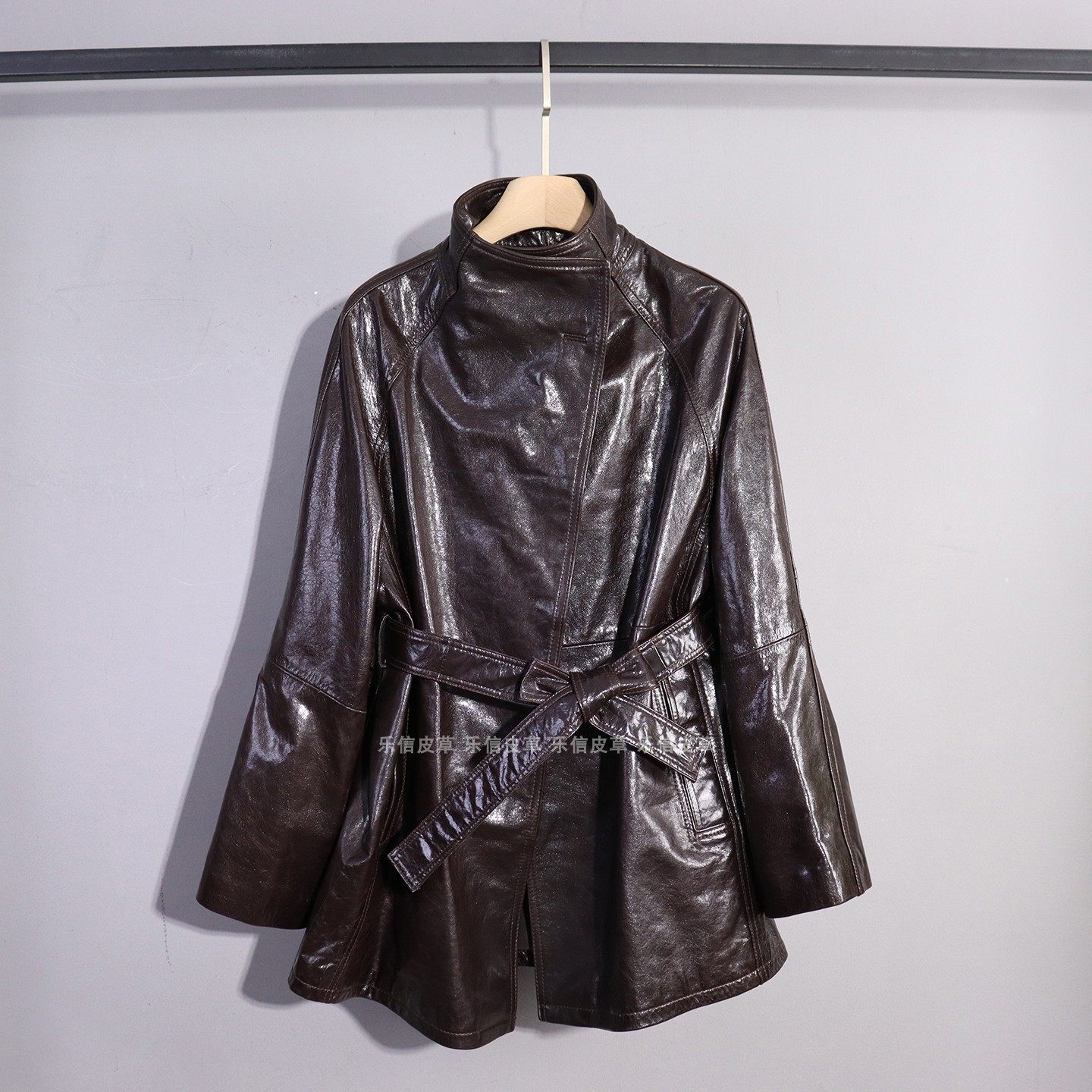 新款真皮皮衣女款绵羊皮时尚气质百搭中长款收腰系带修身洋气外套