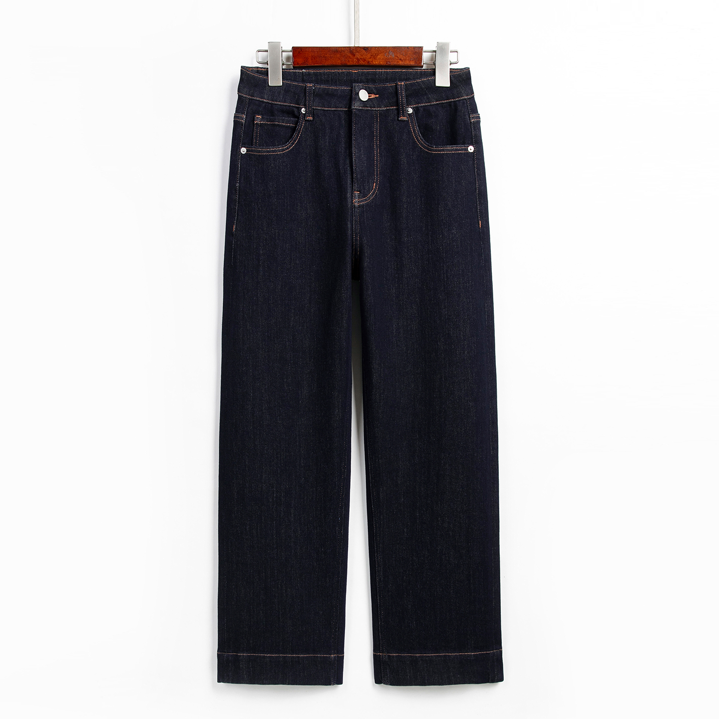 秋冬新款黑色加绒直筒牛仔裤女宽松高腰休闲阔腿九分窄版法棍裤子