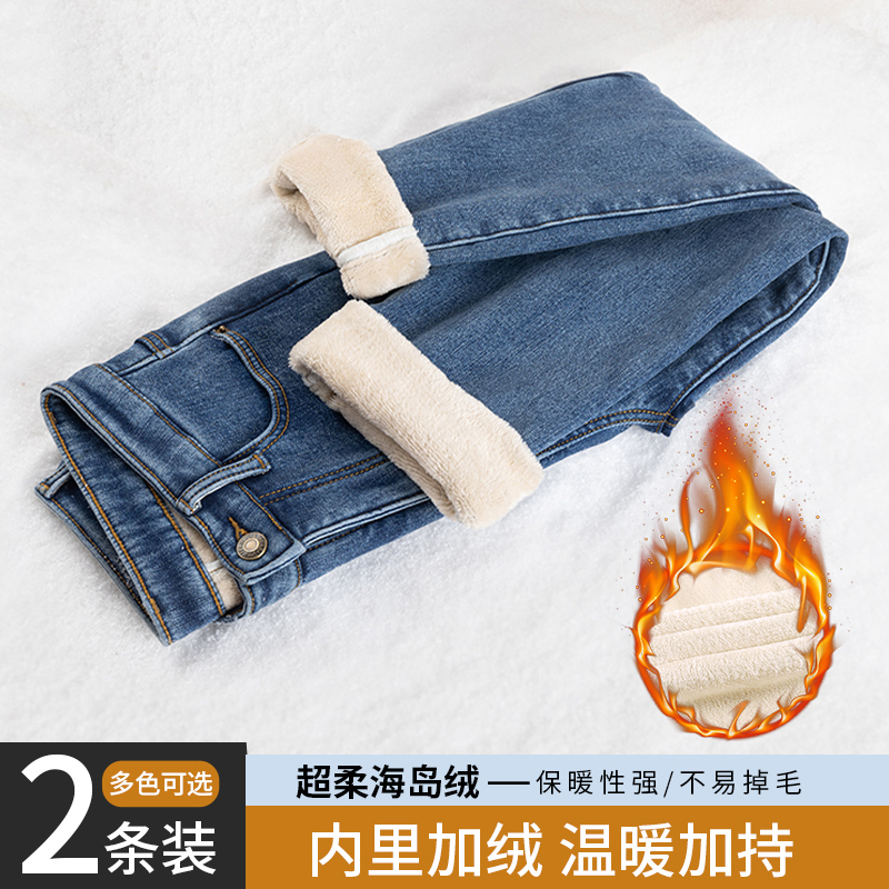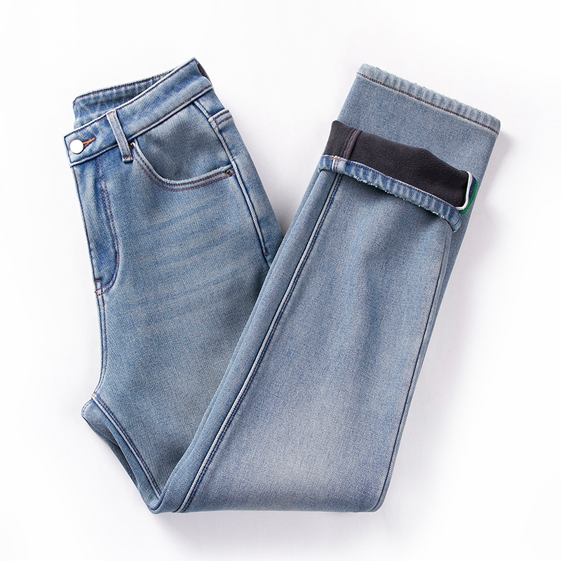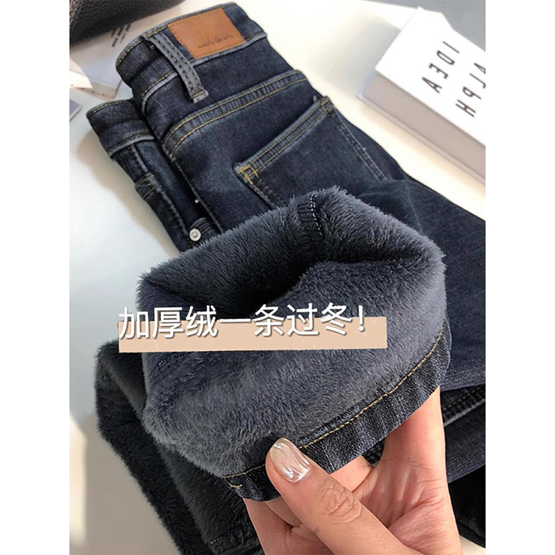 小耳出品【弹力绒绒裤】荃棉加绒直筒牛仔裤女秋冬百搭显瘦长裤女