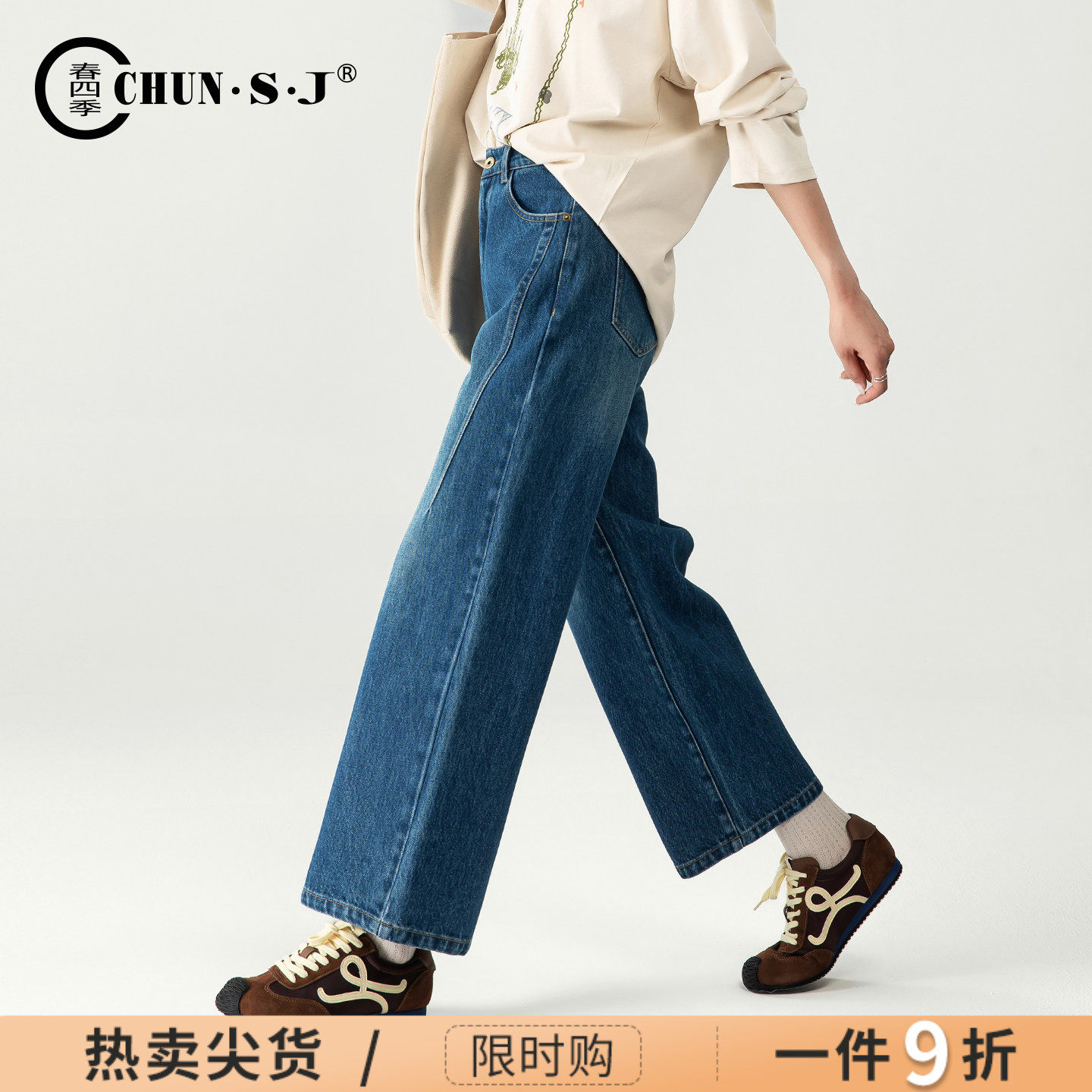 广角裤 太平鸟大直筒牛仔裤2025年秋冬新款宽松加绒阔腿牛仔裤女