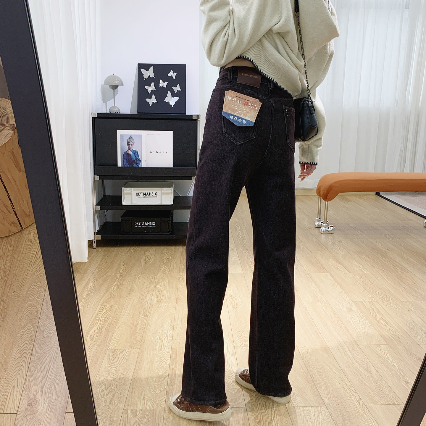 重磅推荐~!黑色窄版加绒直筒牛仔裤女秋冬新款高腰加厚长阔腿裤