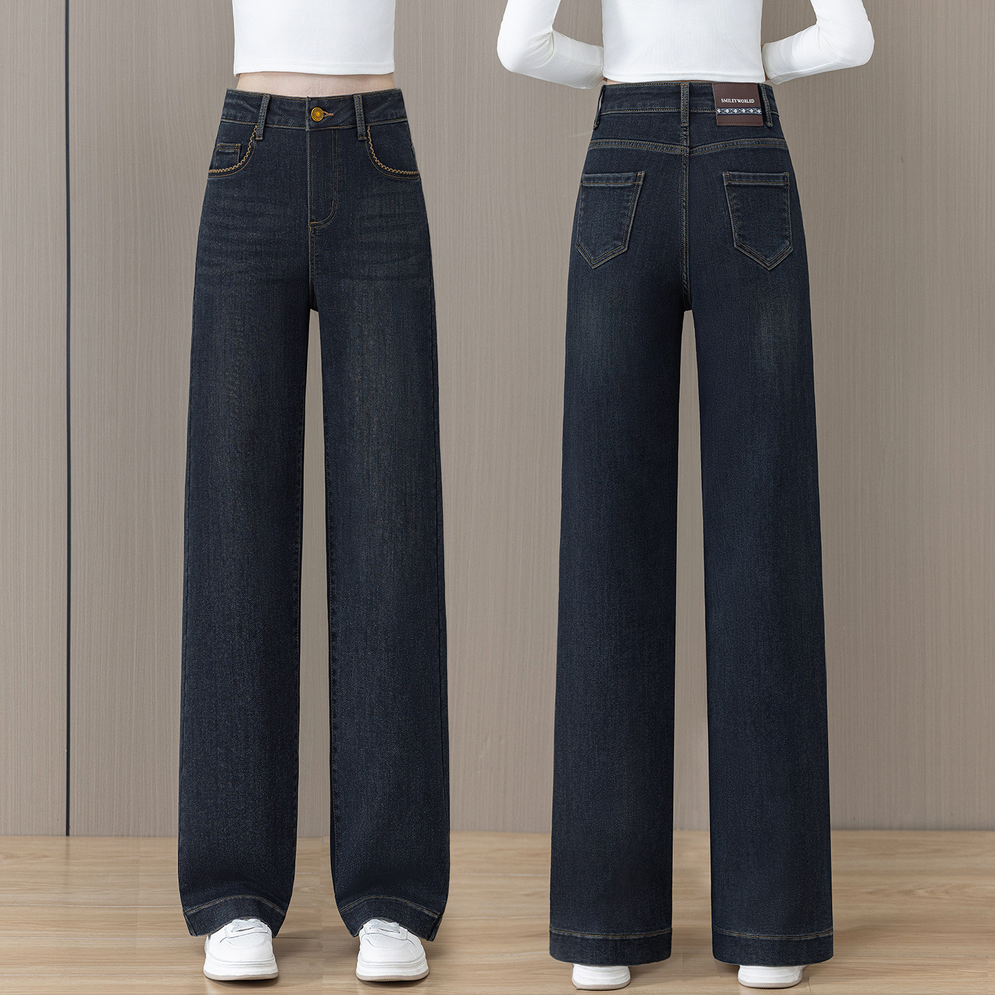 四面弹高腰显瘦加绒直筒牛仔裤女秋冬2025新款裤子宽松窄版阔腿裤