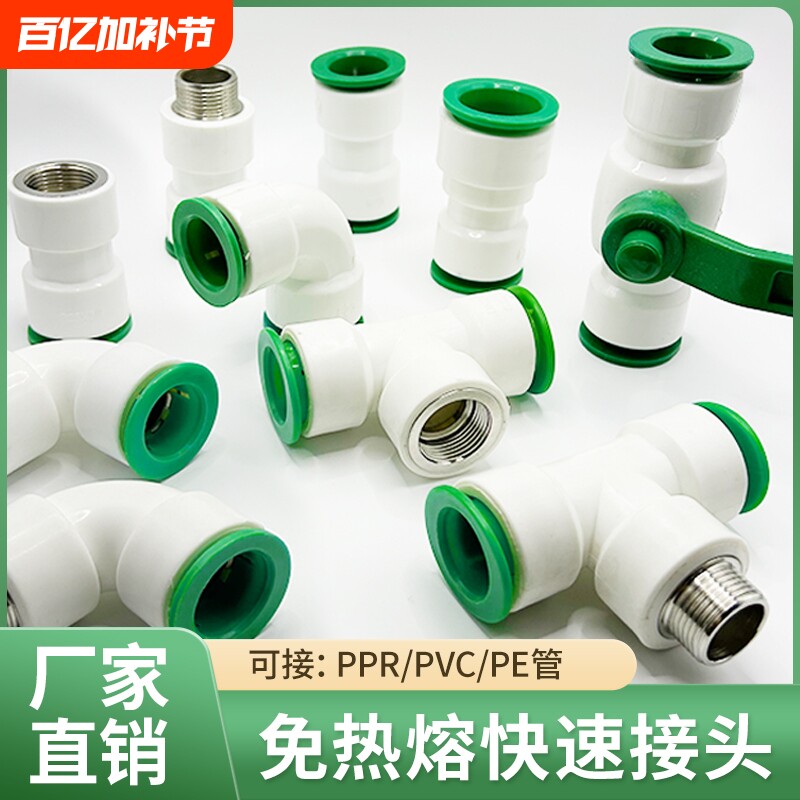 ppr免热熔水管配件4分32025快插直接6pe快速接头球阀PVC弯头三通