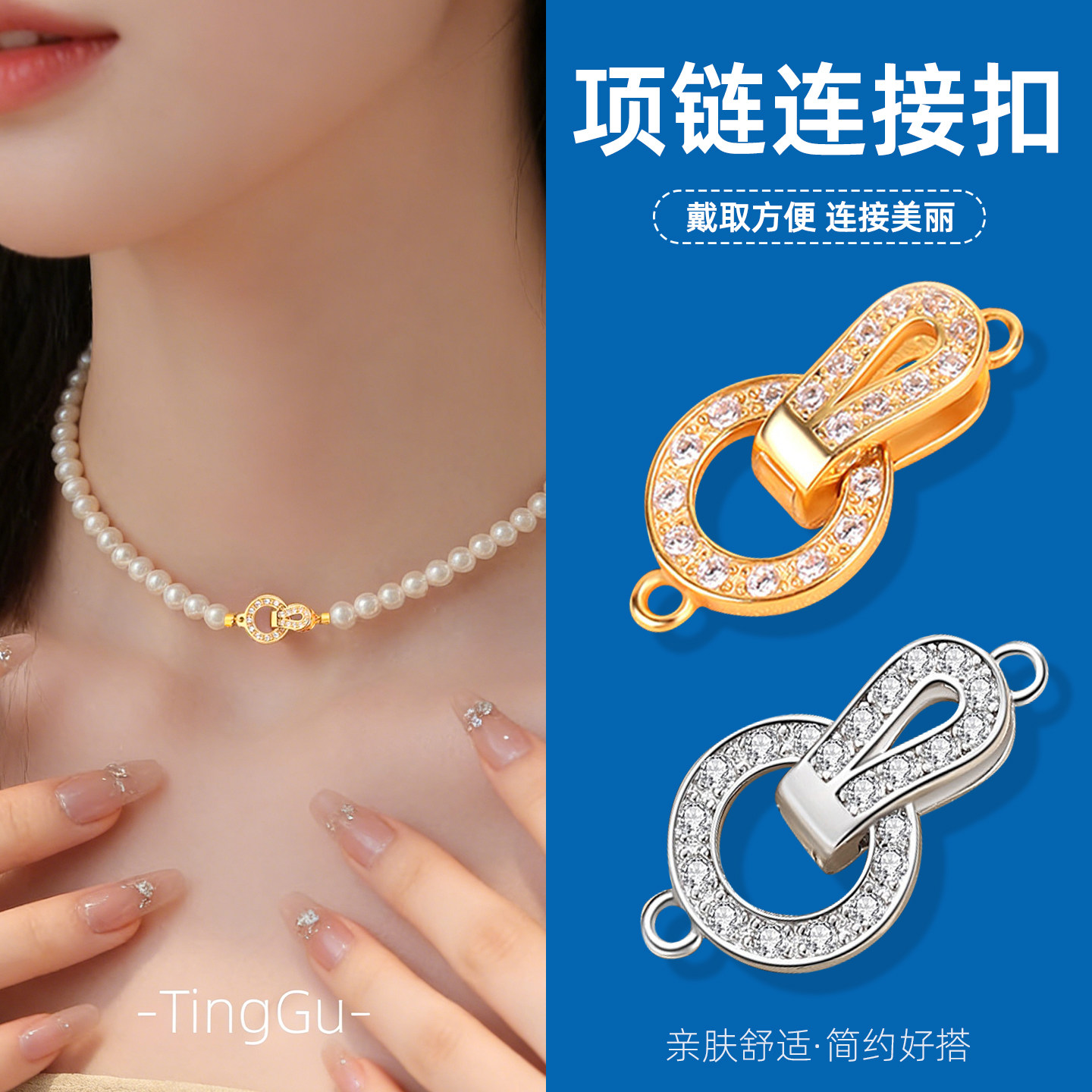 穿珍珠项链扣头配件绳串珠专用线纯银镀18k金手链扣子接头diy材料