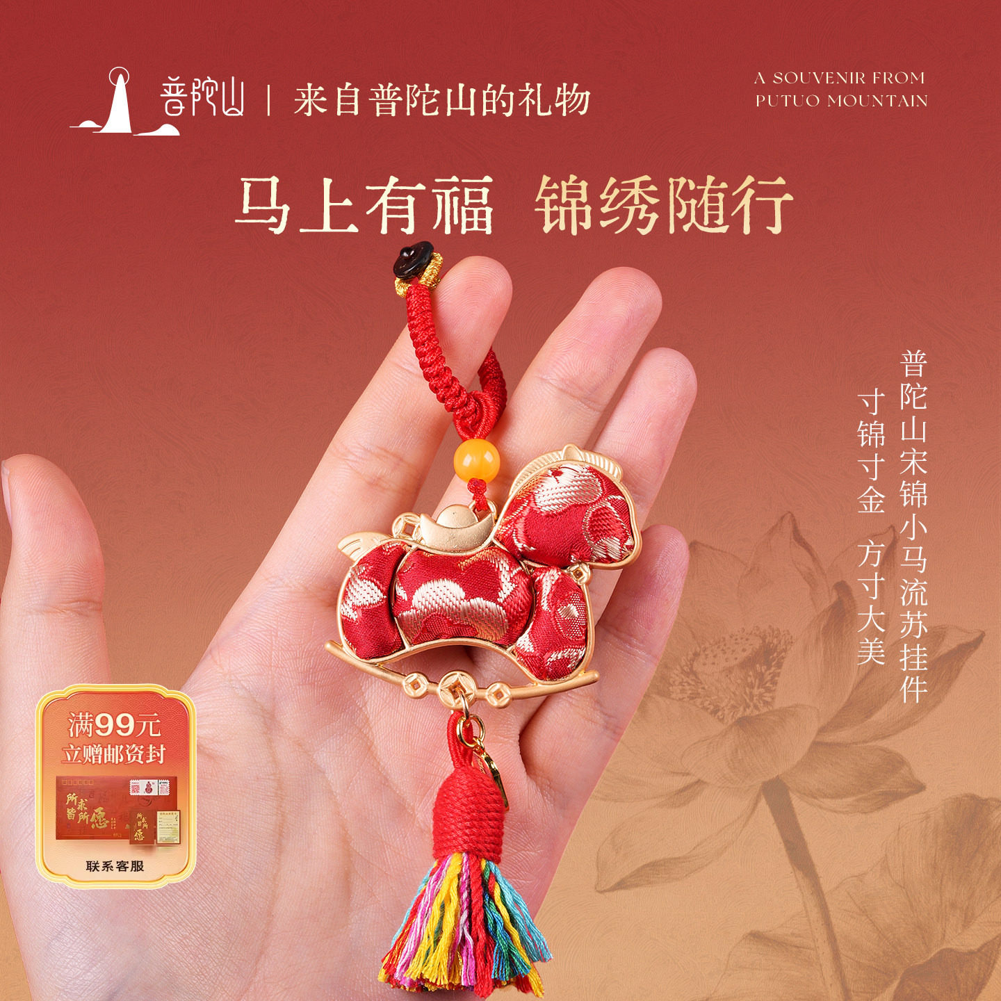 普陀山手工宋锦小马挂件马上有钱流苏马年挂饰钥匙扣车载吊坠礼品