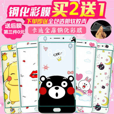 oppor9钢化膜彩膜卡通r9m可爱手机膜r9tm全屏覆盖全包边OPPOR9防摔个性创意手机壳保护套男女款情侣网红超薄