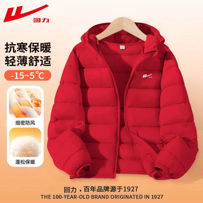 回力童装儿童棉服冬季2025新款男童红色冬装棉衣女童喜庆夹棉外套