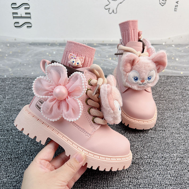 女童鞋粉色马丁靴2025秋冬新款中大儿童单靴小童卡通可爱软底短靴