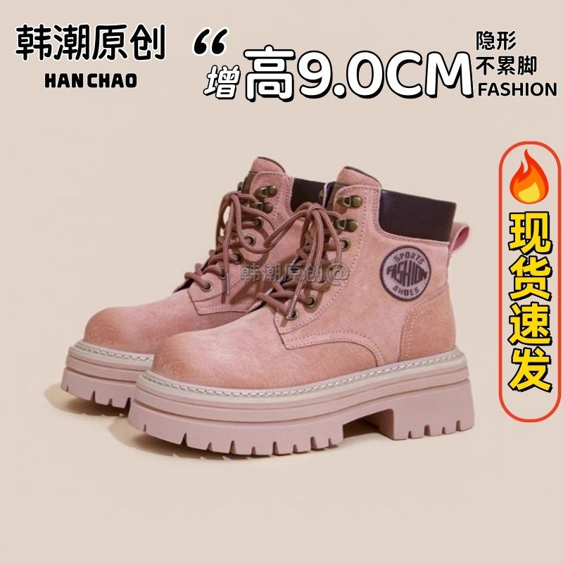 粉色马丁靴女款2025新款秋冬爆款英伦风洋气小短靴厚底增高工装靴