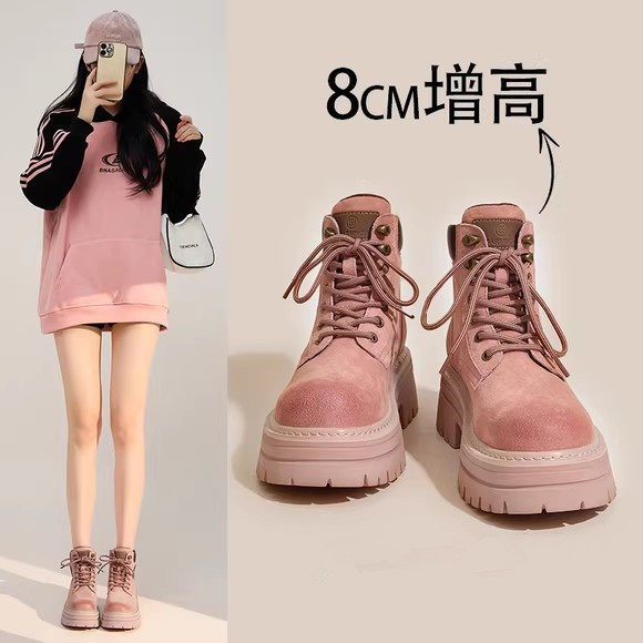 跨境厚底增高马丁靴女2025秋季新款短靴女款时尚休闲百搭粉色靴子