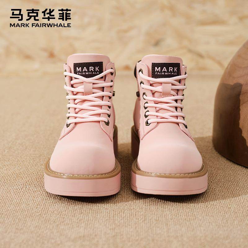 马克华菲粉色厚底德比鞋马丁靴女款夏季2025新款户外增高春秋单靴