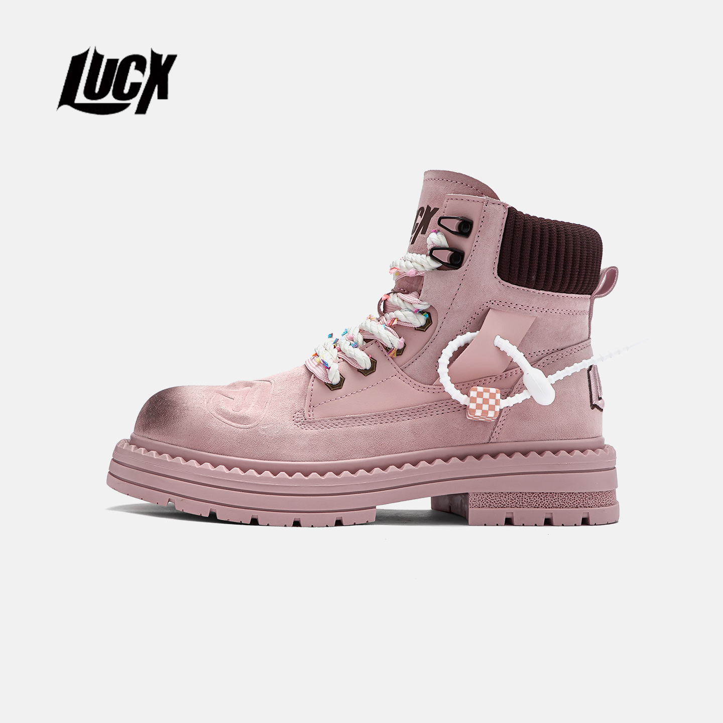 Lucx靴子冬季2025新品厚底粉色女生增高时尚百搭耐磨巨好看马丁靴