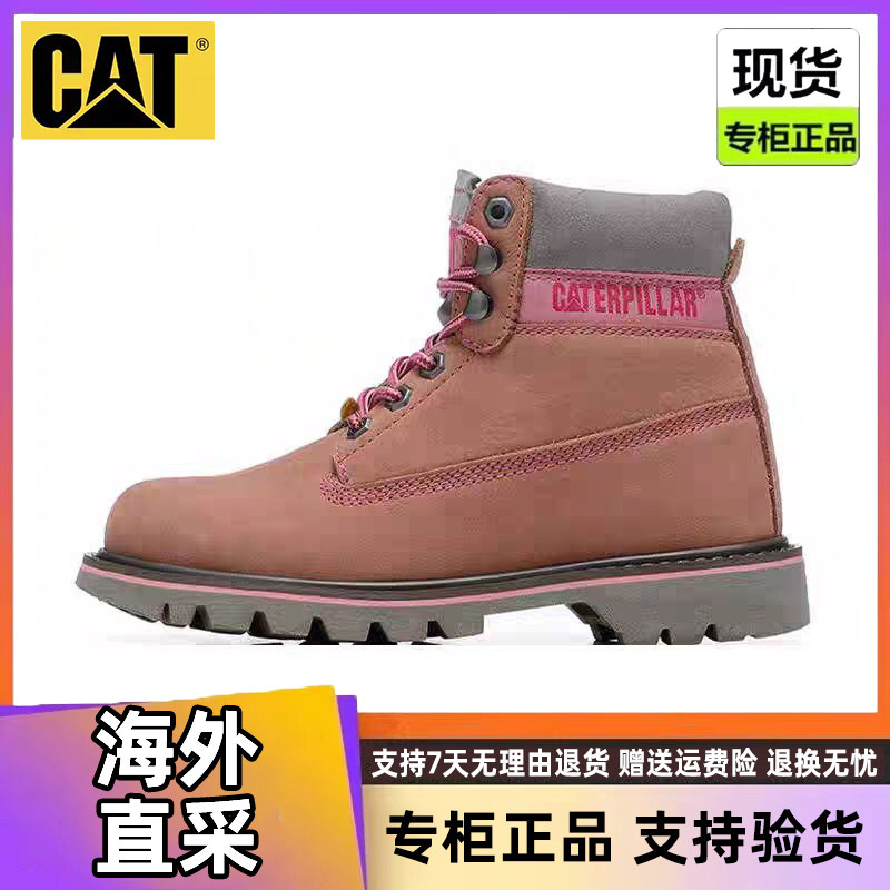 CAT卡特女鞋2025新款高帮粉色马丁靴固特异户外休闲工装鞋P308873