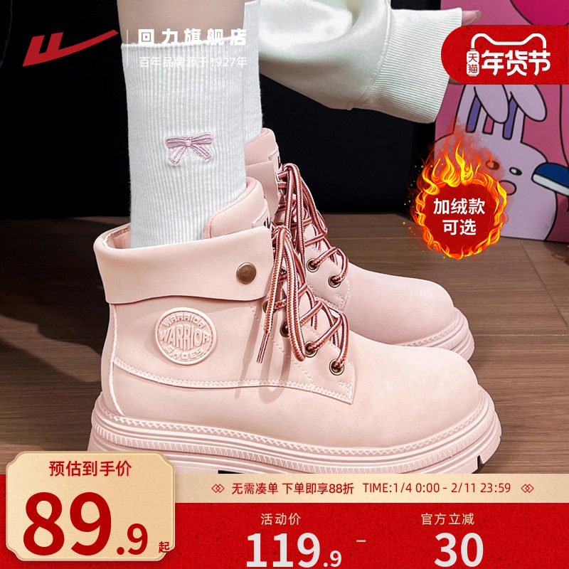 回力粉色厚底马丁靴女2025新款秋冬英伦风网红爆款少女心中筒短靴