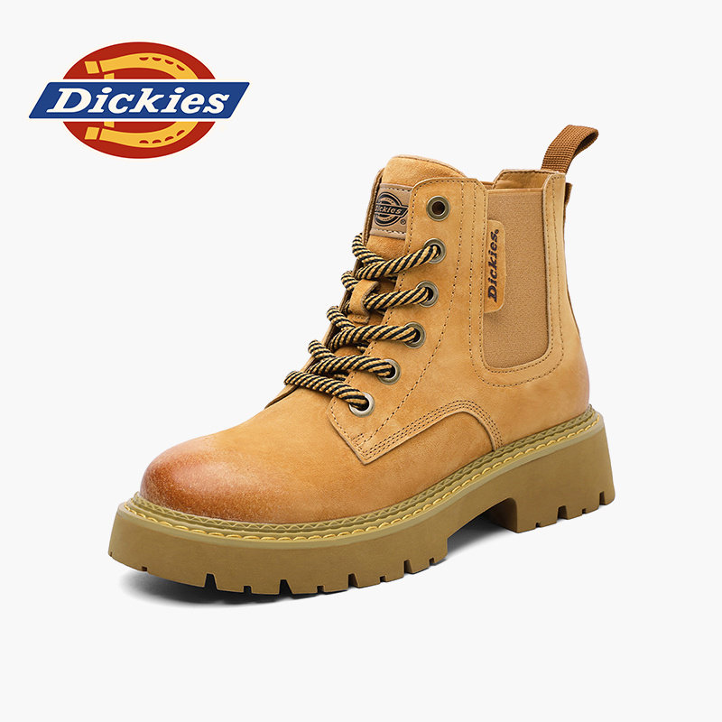 Dickies女鞋2025新款冬季粉色休闲靴子厚底加绒马丁靴百搭大黄靴