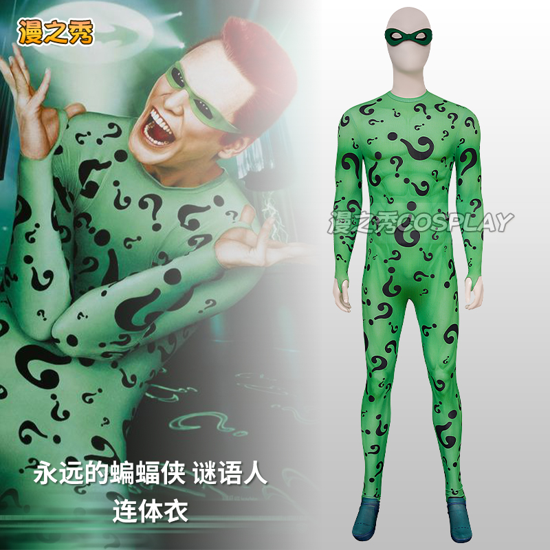 谜语人cos服连体衣 永远的蝙蝠侠cosplay影视同款万圣节全套cos服