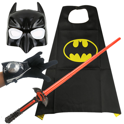 万圣节玩具表演服装道具男cos蝙蝠侠儿童发光面具披风声光剑套装