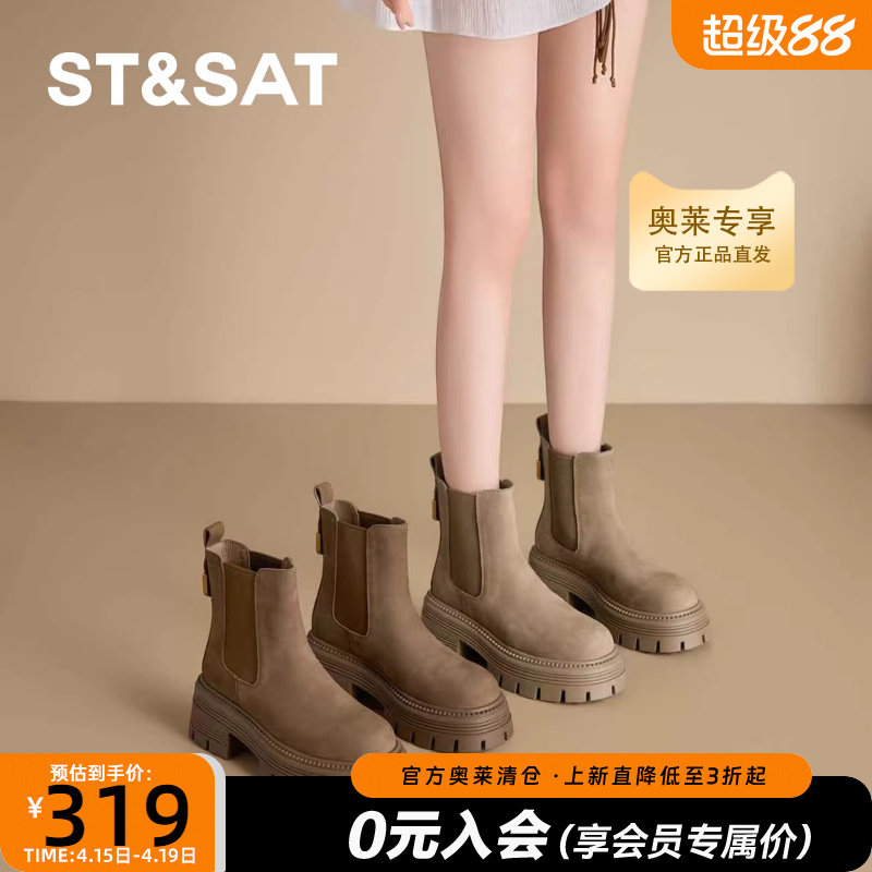 星期六真皮切尔西靴短靴女靴子2025新款秋季英伦风粗跟厚底马丁靴