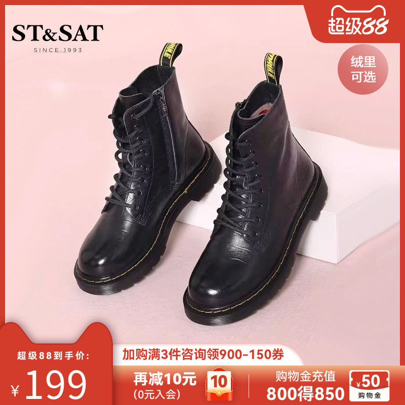 星期六英伦风牛皮厚底马丁靴女靴2025秋冬新款真皮靴子机车靴短靴