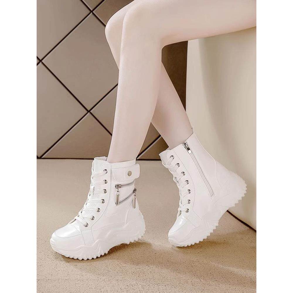 Jishizhe厚底女靴2025秋冬新款内增高7厘米真皮覆古短靴