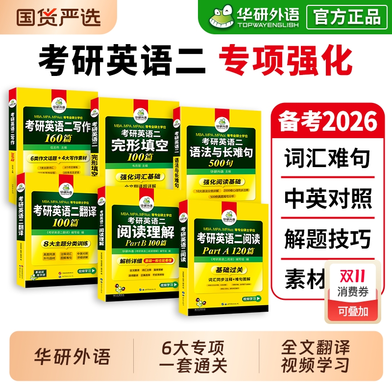 华研外语2026考研英语二阅读理解语法与长难句完形填空翻译写作文专项训练书籍全套教材复习资料搭历年真题试卷词汇单词法硕英语一