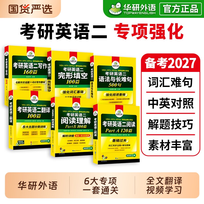 华研外语 2027考研英语二基础训练阅读理解完形填空翻译写作文模拟试卷专项训练书搭历年真题试卷词汇单词语法与长难句资料英语一