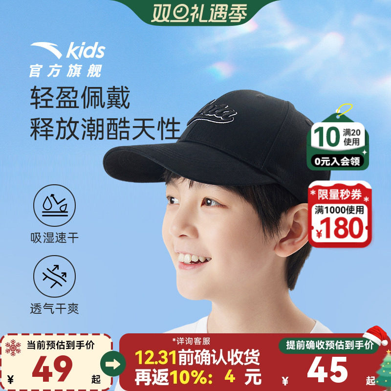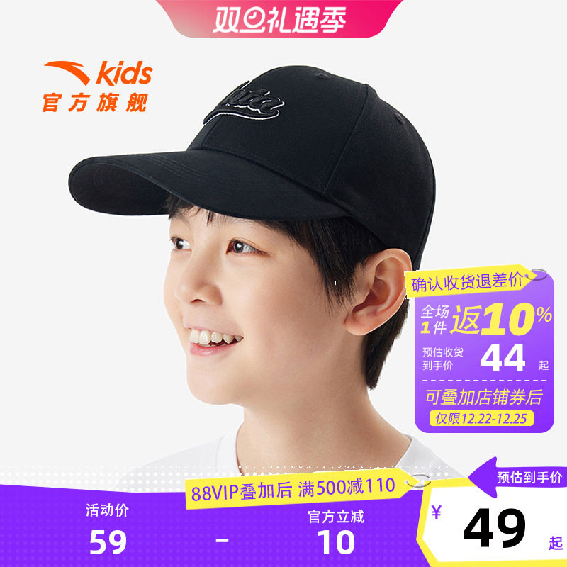 安踏儿童帽子男童防晒帽棒球帽户外遮阳帽鸭舌帽太阳帽女童帽子潮