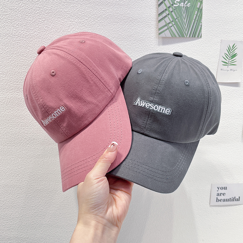 夏天软顶帽子女休闲百搭英文Awesome刺绣鸭舌帽遮阳防晒帽棒球帽