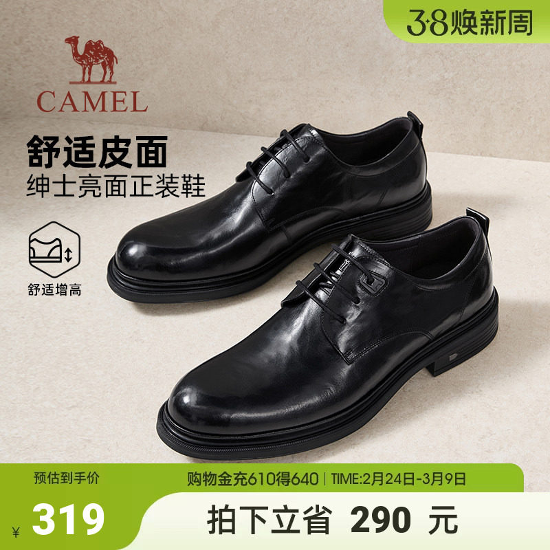 骆驼男鞋2026春季商务皮鞋男真皮加绒休闲德比鞋增高新郎结婚鞋男