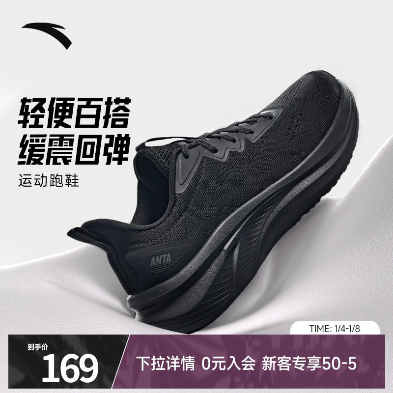 安踏男鞋跑鞋轻便运动鞋男冬季新款透气减震官方正品黑色跑步鞋子