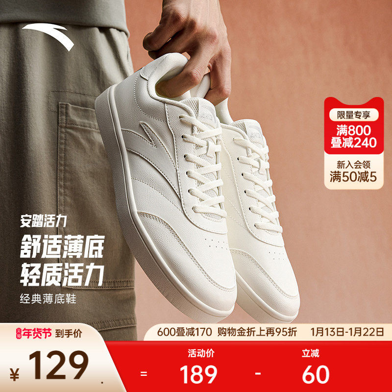 安踏活力小白鞋丨经典薄底低帮板鞋男鞋2025冬季新款简约运动鞋子