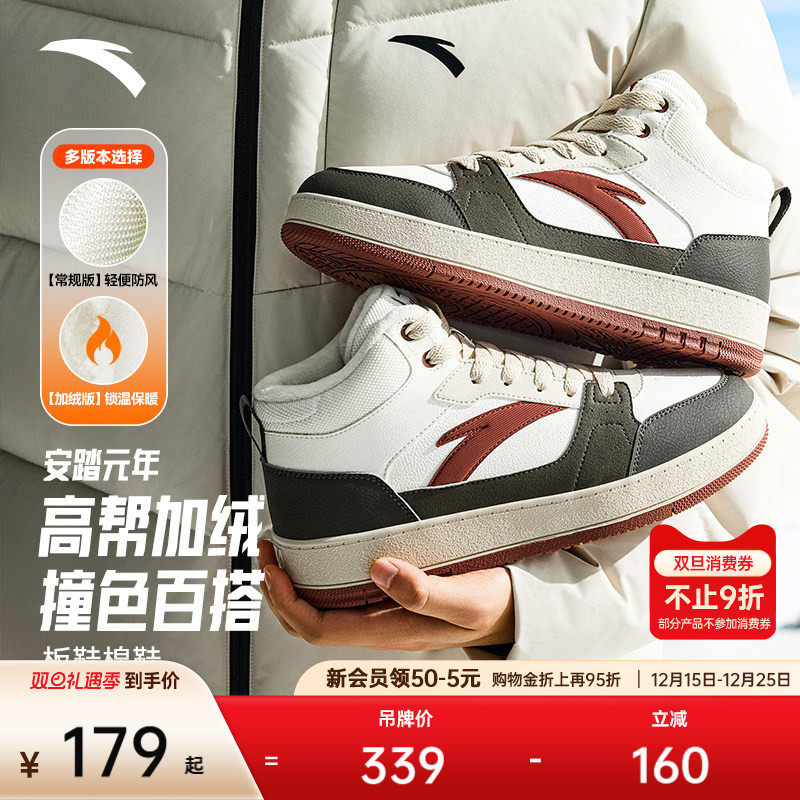 安踏轻松2丨高帮板鞋男鞋2025冬季新款拼色运动鞋百搭时尚运动鞋