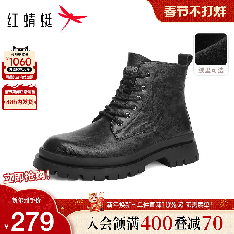 红蜻蜓男鞋冬季新款男士高帮棉鞋商务皮靴休闲皮鞋真皮马丁靴男款