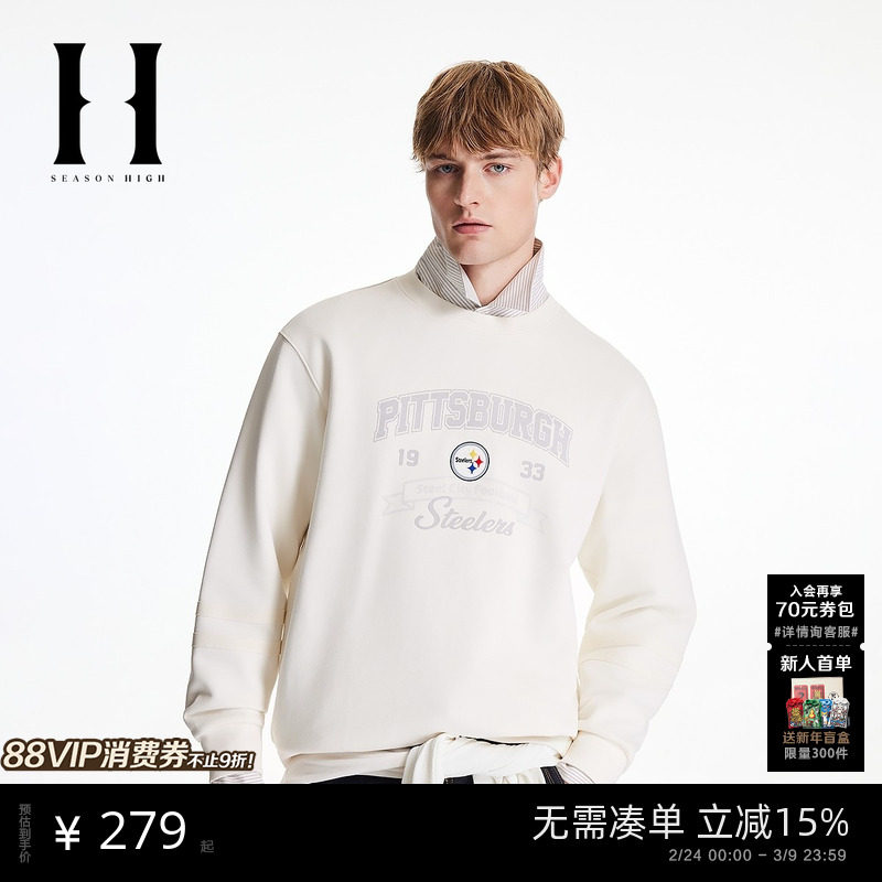 SEASON HIGH春季男装上衣卫衣略宽松罗纹匹兹堡钢人队刺绣潮圆领