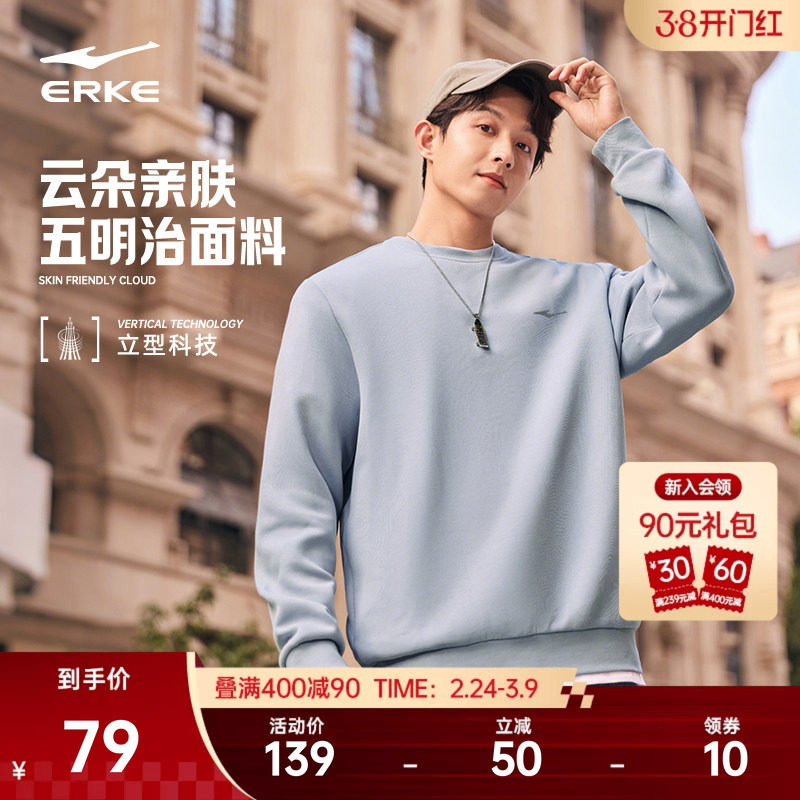 鸿星尔克卫衣男春秋男士男生青少年圆领长袖运动休闲宽松上衣男装