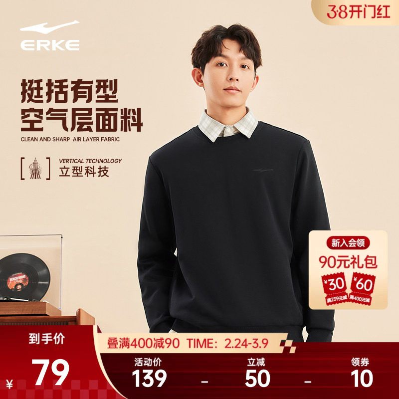 鸿星尔克卫衣男款春季新款男士男生运动圆领长袖上衣爸爸男装衣服