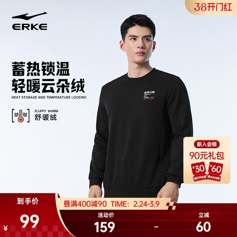 鸿星尔克加厚卫衣男春秋新款男士圆领运动套头衫打底长袖上衣男装