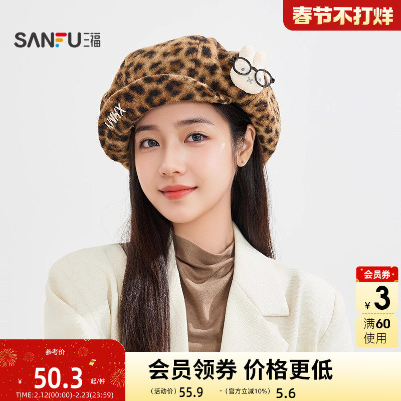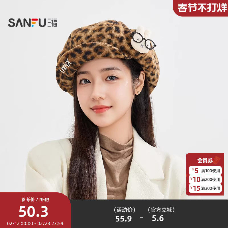 三福萌翻豹纹混款八角帽 潮流个性服饰配件配饰帽子510249