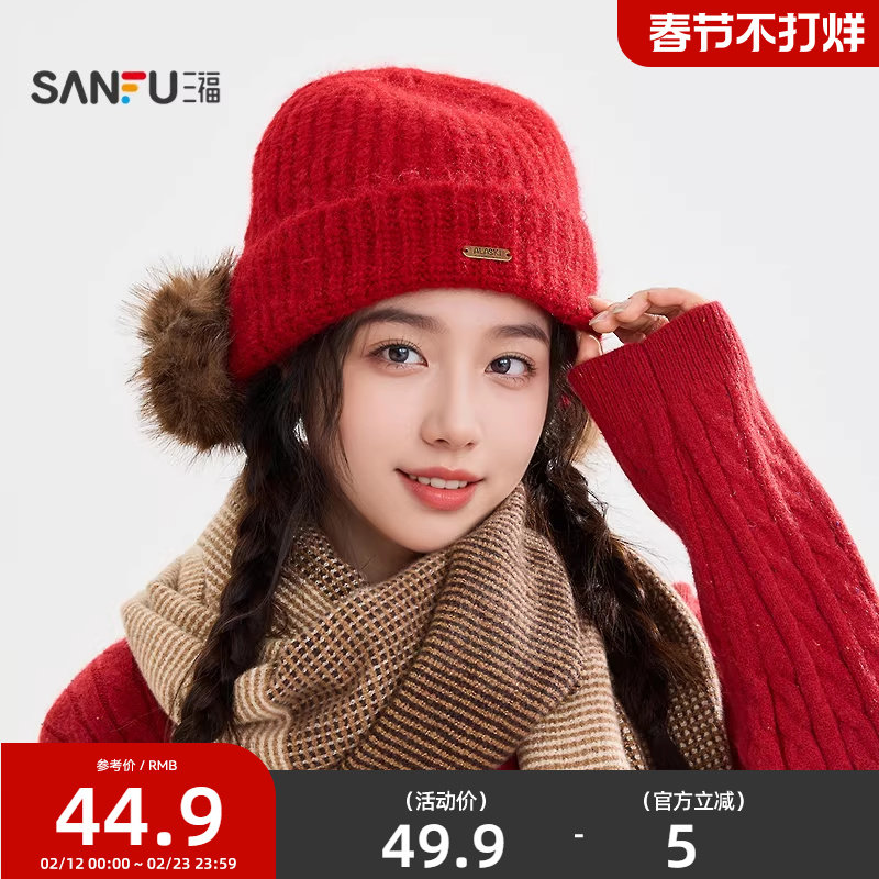 三福复古耳包款西瓜帽 潮流个性时尚服饰配件针织帽子851046